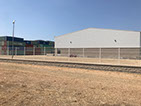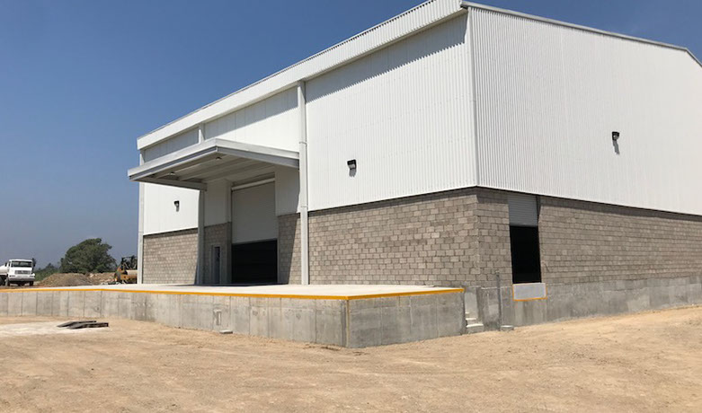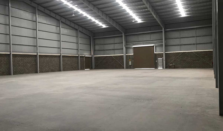 Almacén de 1,200 m2 con andén y hasta 5 posiciones de descarga. Patio y vialidades iluminadas con postes de 9 y 12 metros de altura.